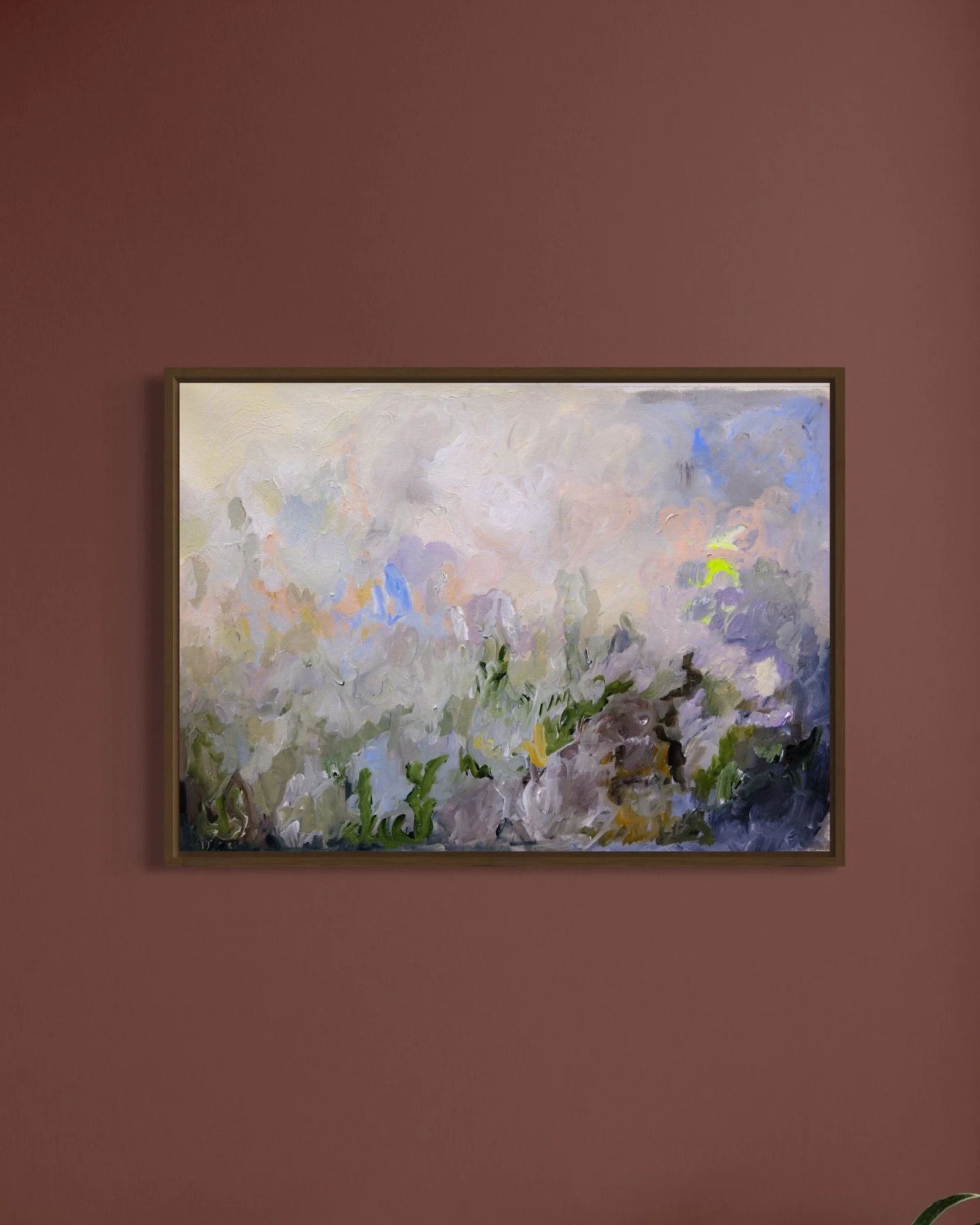 This piece was made in deep grief. Finding beauty in the sharp edge of a shattered heart. It is the feeling of walking in a graveyard on a rainy spring day. Blossoms peeking out of the gravestones as a reminder of hope and rebirth.
